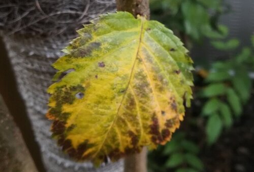 校舎の周りで秋を見つけました。木の葉が少しずつ赤や黄色になってきました。