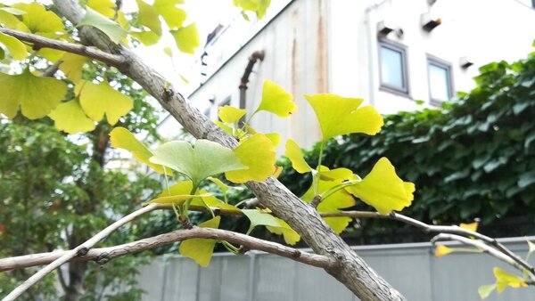 東京都の木でもあるイチョウ うっすらと黄緑の葉が黄色に変わり始めていました。