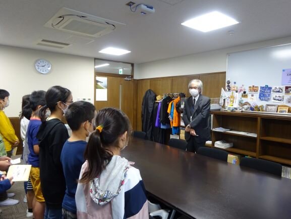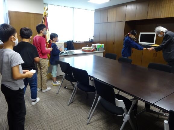 ちょっぴり緊張しながら校長室へ入る子供たち。
