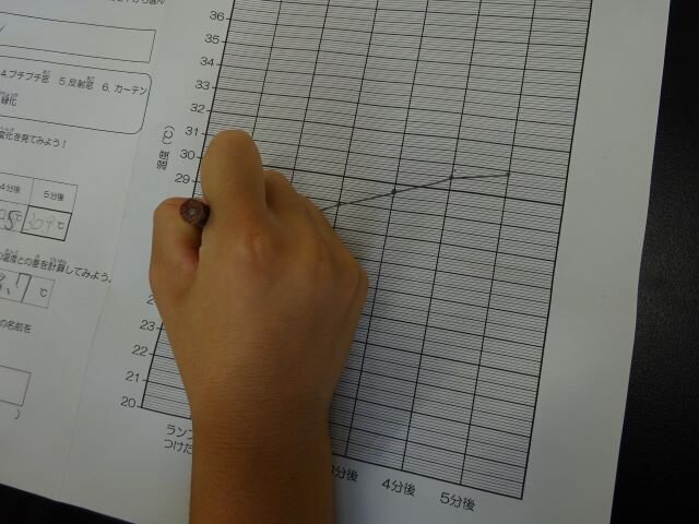 温度計を見る人と、記録する人、2人一組で協力して取り組みました。