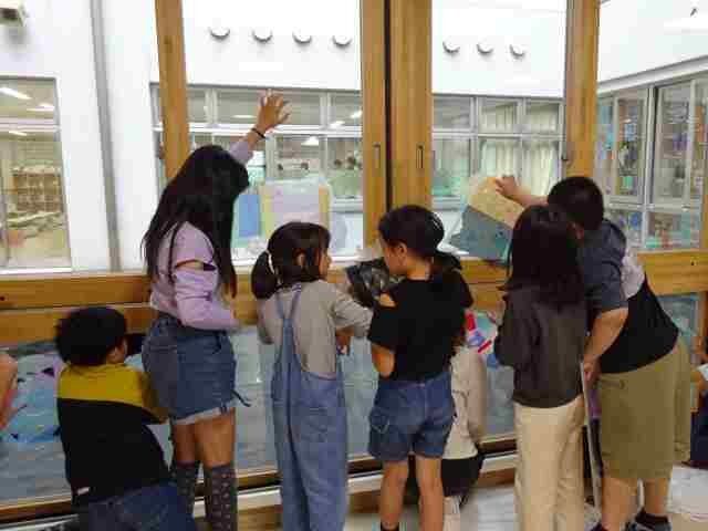 4学年小学部文化祭(展覧会)まであと少し! 2023.11.13 今週末の小学部文化祭(展覧会)に向けて、着々と準備が進んでいます。 4年生の展示作品の一つに「ニステンドグラス」があります。 交流ホールの窓ガラスに、華やかなステンドグラスが飾られていますが、よく見ると様々な素材が使われています。 光に透かしたときのことを考えて、どのように素材を重ね合わせればいいかを工夫して作りました。 どんな素材を、どのように重ね合わせているのか、当日は近くに寄ってじっくりご覧いただきたいと思います!