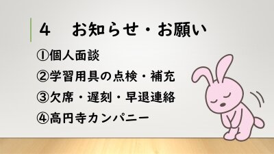保護者会では、機器の不具合で用意していたスライドを見ていただくことができませんでした。