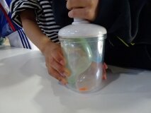 容器の中に入ったゴム風船。空気を抜いていくと・・・?