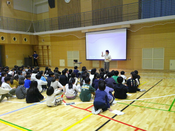杉並区の派遣事業に参加した2名の中学部生(8年生)が小学部生に向けて内容……