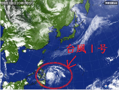 台湾(たいわん)の近くで力が弱まったので日本には来ませんでしたが、5月にも実は台風が発生しているのです。いつもだと3月に1号が見られるそうで、今年は遅めだということです。台風の目、見えるかな?