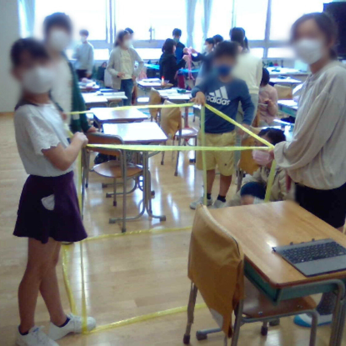 体積の学習をしています。 1㎥の感覚を得るためにビニルテープで1㎥を作……
