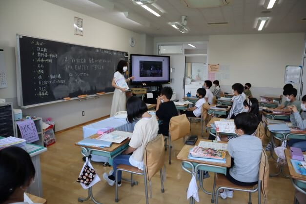 外国語担当の先生、JTEの先生の指導のもと、楽しく外国語の学習をしている……