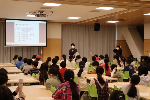 学年集会を開き、高学年の心構えを確認しました。 学校生活を自主的に過ごし……
