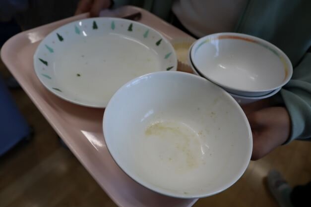 給食が始まって数日。 毎日のように完食です。 もとより、黙食ですが、黙々……