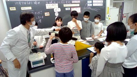 授業では流れる水のはたらきに続き、火山による地層のでき方や、地震や噴火による土地の変化について学習を進めています。