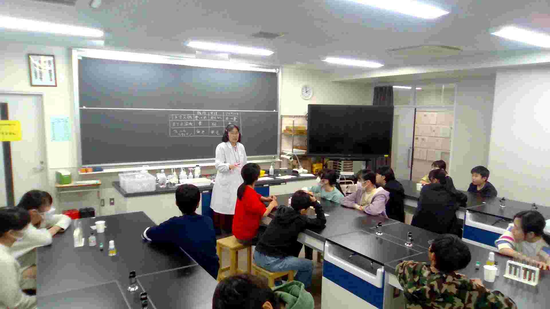6学年理科実験【小中一貫】 2024.02.29 6年生は、卒業を控えたこの時期に、中学部の先生に特別授業をしていただきました。 中学部の理科室で中学で行う実験の一部を体験させていただきました。 酸性・アルカリ性の判別実験、スライムの制作をしました。 子どもたちは歓声を上げたり、溶液の変化に注目をしていました。 中学校への期待が高まったことと思います。