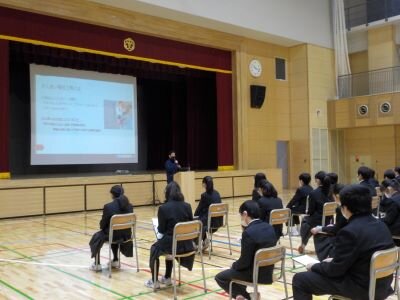 1月22日(土)に7学年とD組全学年の生徒が職業講話に参加しました。今回は2名の講師の方をお招きして、職業に関するお話をしていただきました。