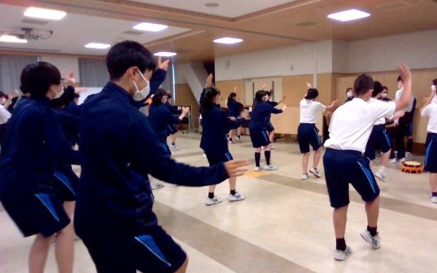 5月28日の学習発表会(体育の部)に向けて、阿波おどり練習が始まりました……