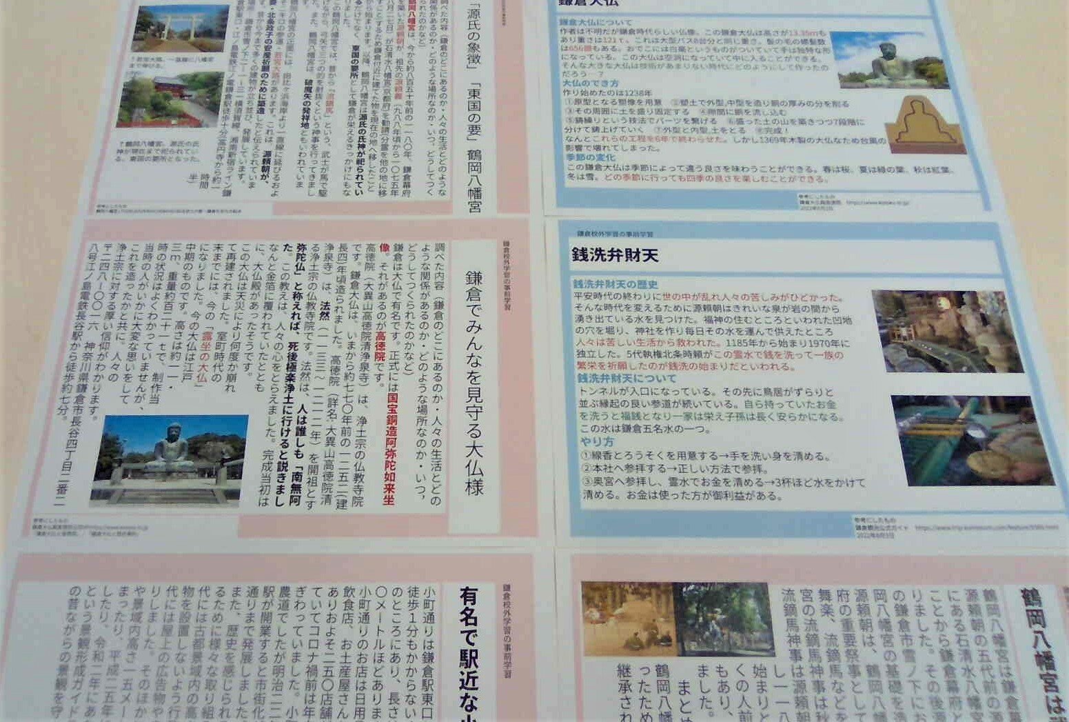 社会科では12月に実施する校外学習に向けて、鎌倉の調べ学習に取り組みました。各自がテーマについて調べ、文章や構成を工夫して作成していました。2学期後半に始まる事前学習やコース決めでは、このシートが役立つと思います。