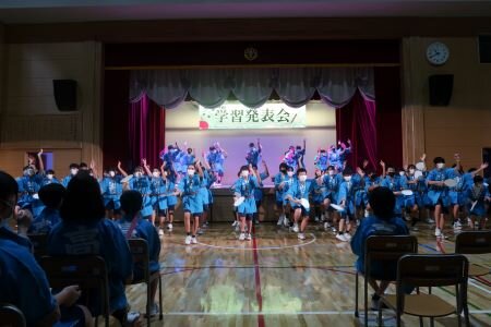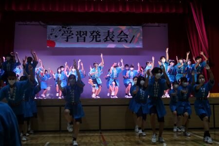 学習発表会終了後には、校庭で小中合同「みんなでヤットサー!阿波おどり」を行いました。