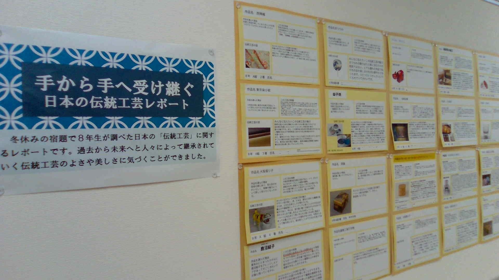美術「日本の伝統工芸レポート」・・・日本各地の伝統工芸の中から気に入ったものを選び、調べました。5Fに掲示中です。