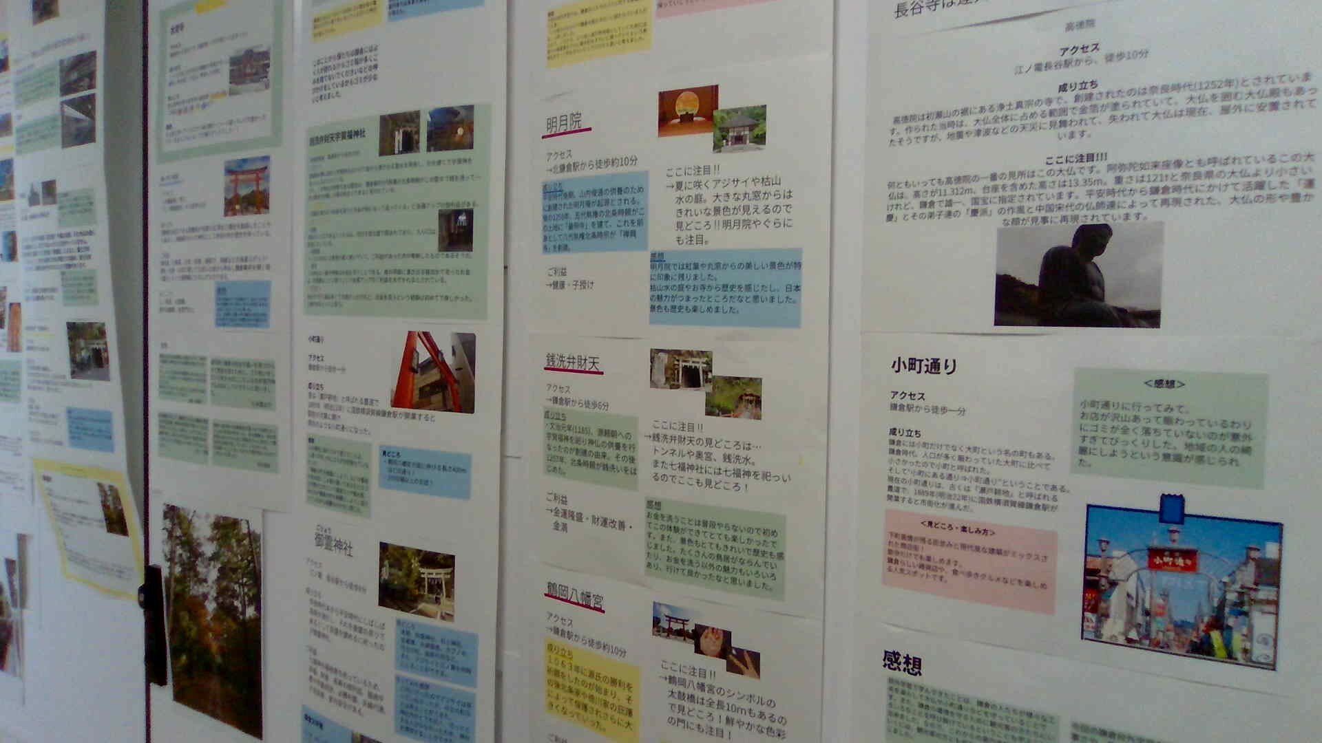 総合的な学習の時間「鎌倉校外学習事後新聞」・・・12月の授業で作成していたものを完成させました。8年少人数教室前に掲示しています。