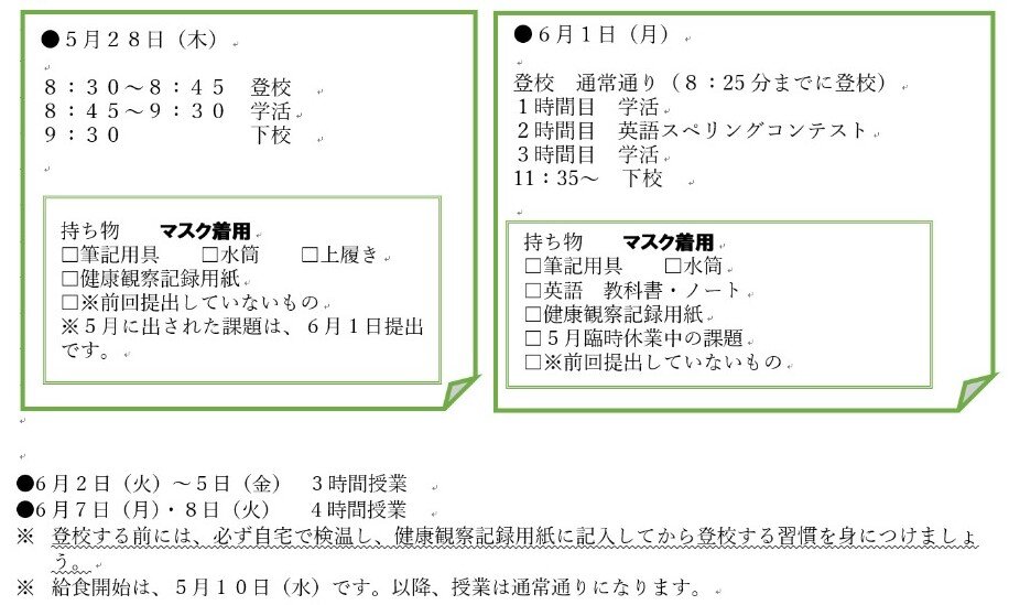 ※informationの配布物のページに学年だよりNo.4を掲載しました。ご覧ください。