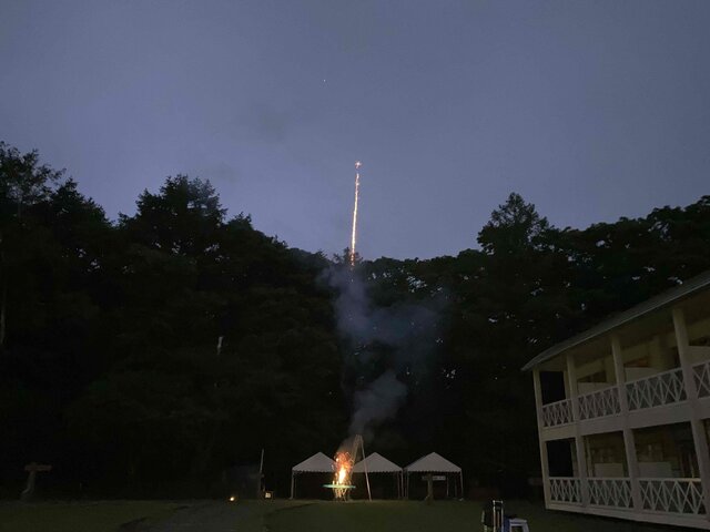 1日目最後のプログラムの花火を行いました。少々肌寒さを感じながらも打ち上……