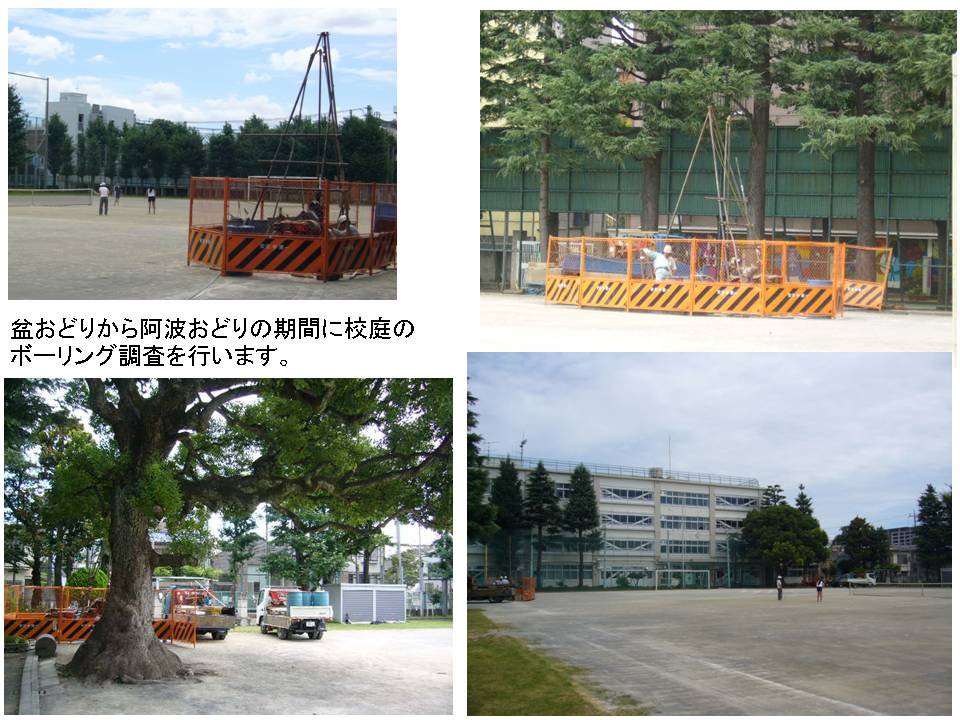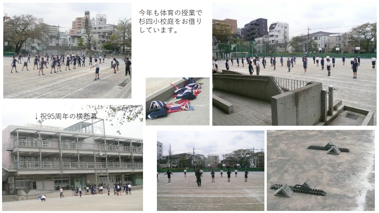 工事に備えて、体育の授業(校庭での種目)は杉四小で行います。部活についても順次、小学校で行う予定です。