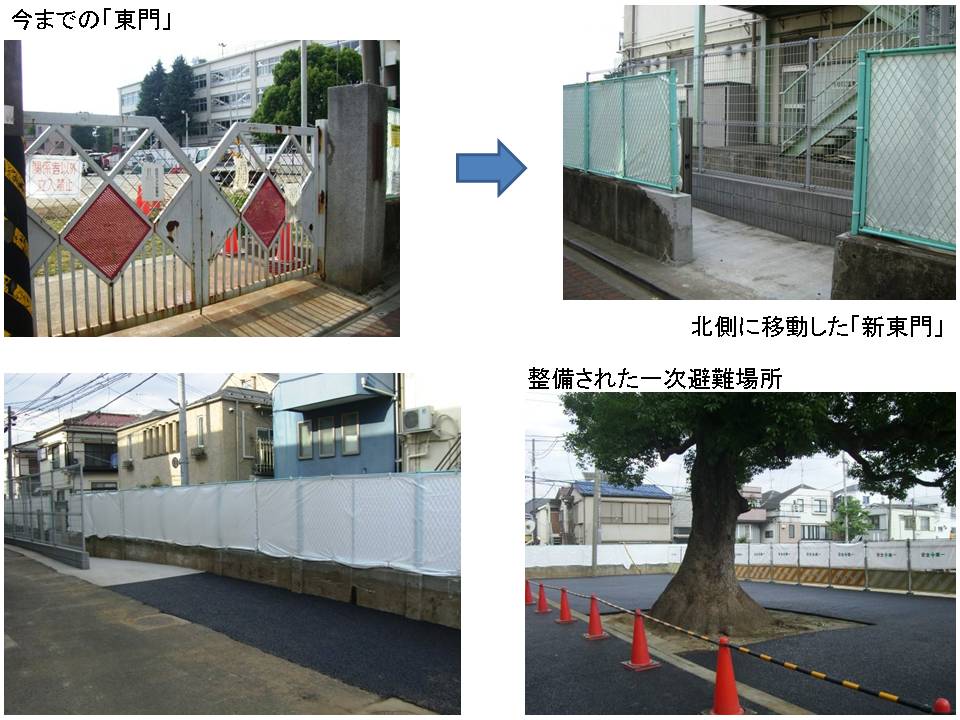 校庭が使用できなくなる関係で、非常時の避難場所を体育館以外に確保しました。状況によって近隣の公園等への避難についても計画しています。