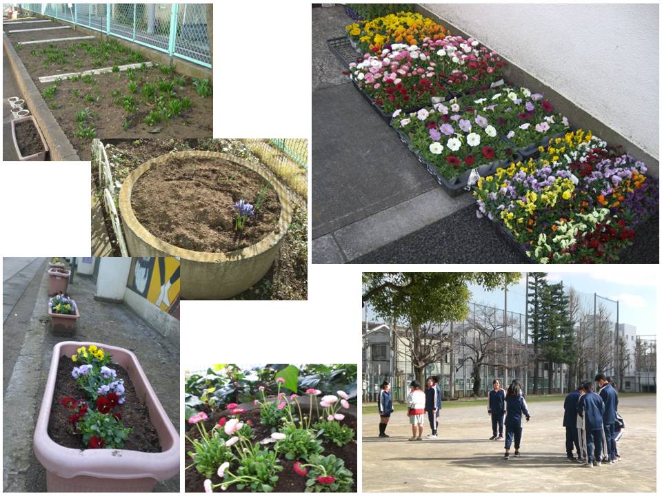 6月18日高円寺中にて行いました。花を植える準備ができました。