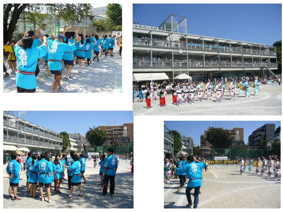 10月31日 わくわくフェスティバルでは、全校生徒が縦割りで4つの連に分かれて踊りを競います。女子衣装も本格的に着付けてもらい、高円寺の各連に所属する生徒を中心に踊りやリズムを競います。