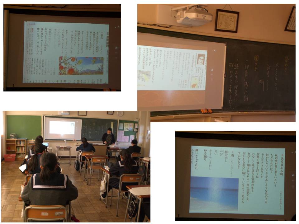 詩をみんなに紹介しました。紹介された詩についての印象や、読み手の工夫を感じながら詩を味わっていきます。