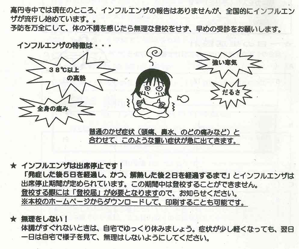 今後、本格的な流行が予想されるため、インフルエンザにかからない、感染を広げないための対策を一人ひとりが心がけてください。