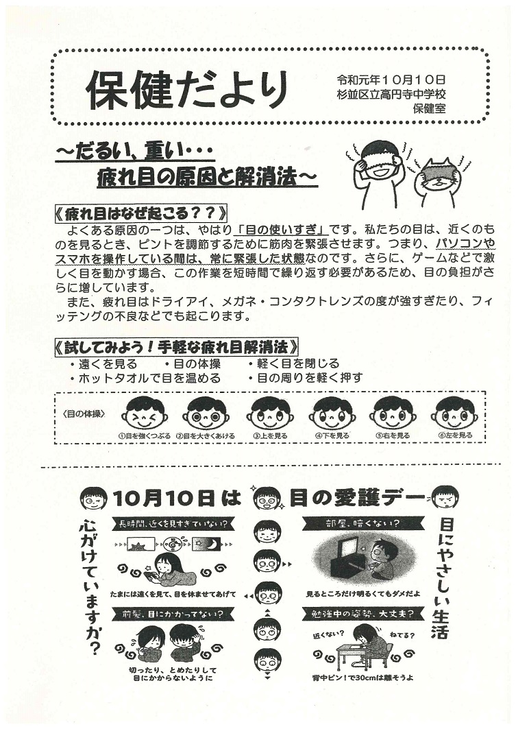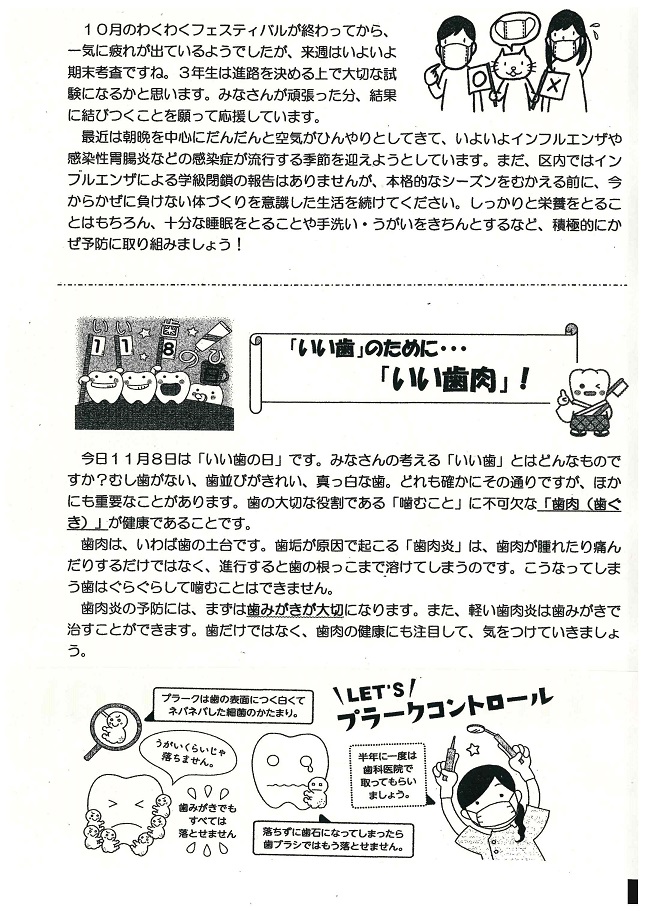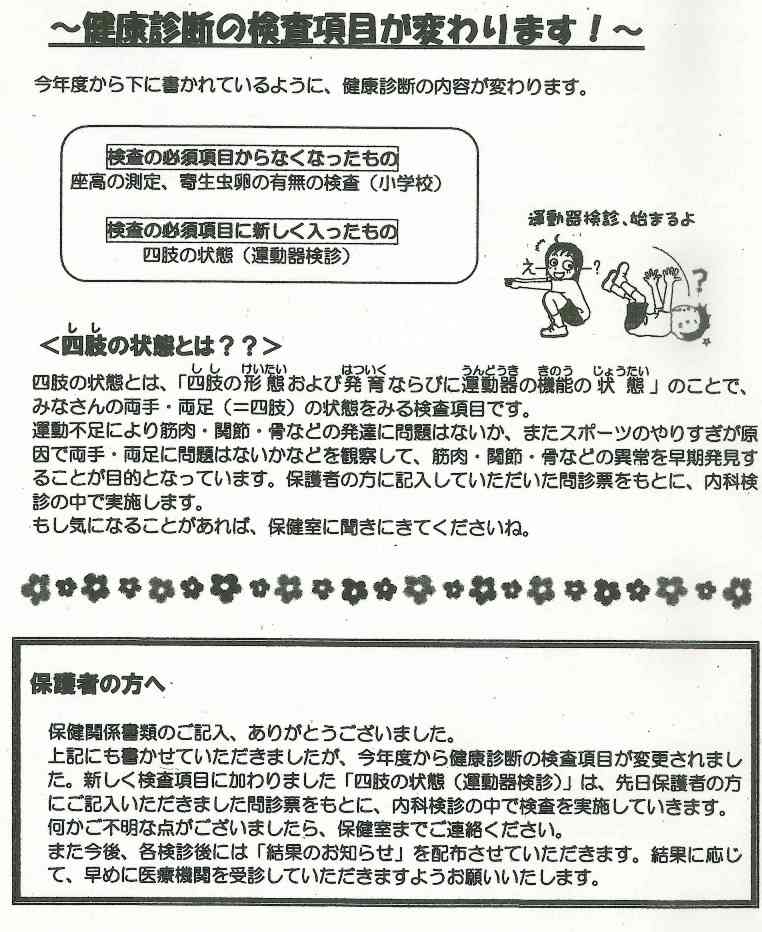 健康診断が続いていますが、せいとのみなさんは検診結果のお知らせは必ず保護者に渡してください。そして、必ず医療機関に受診し、結果につきましては、所定の用紙で学校に連絡するようにしてください。