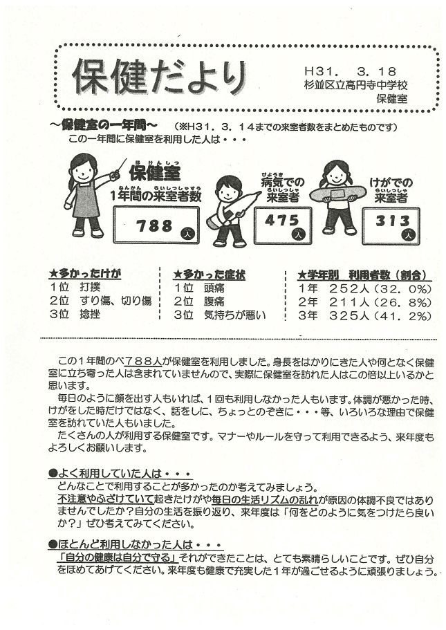 特色ある教育>>保健室より >>