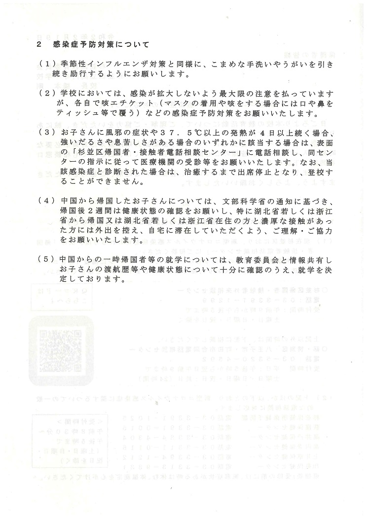 また、体調が悪い場合には早めに休養、受信するこで感染拡大を防いでいくようにしてまいりますので、保護者のみなさまのご理解とご協力をお願いいたします。