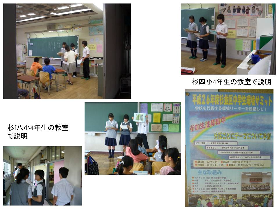 杉四小、杉八小の4年生に向けて、環境サミットで作成した「チェックシート」を配布し、説明、協力をお願いしてきました。