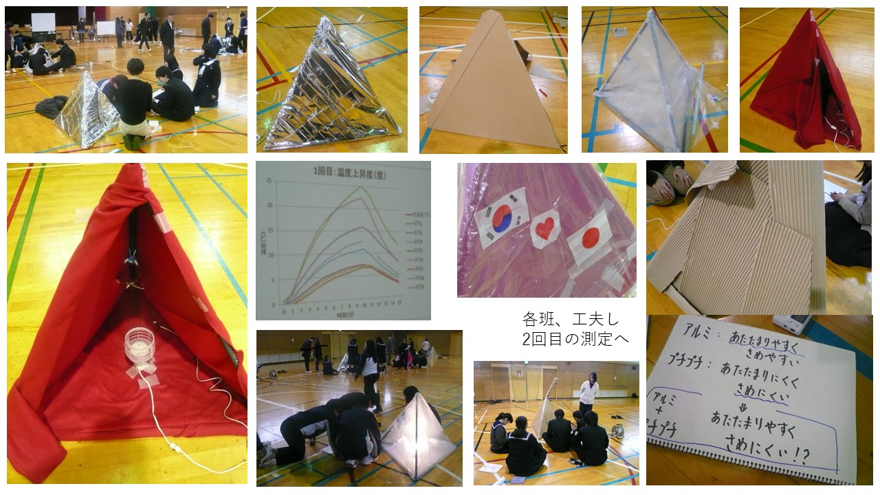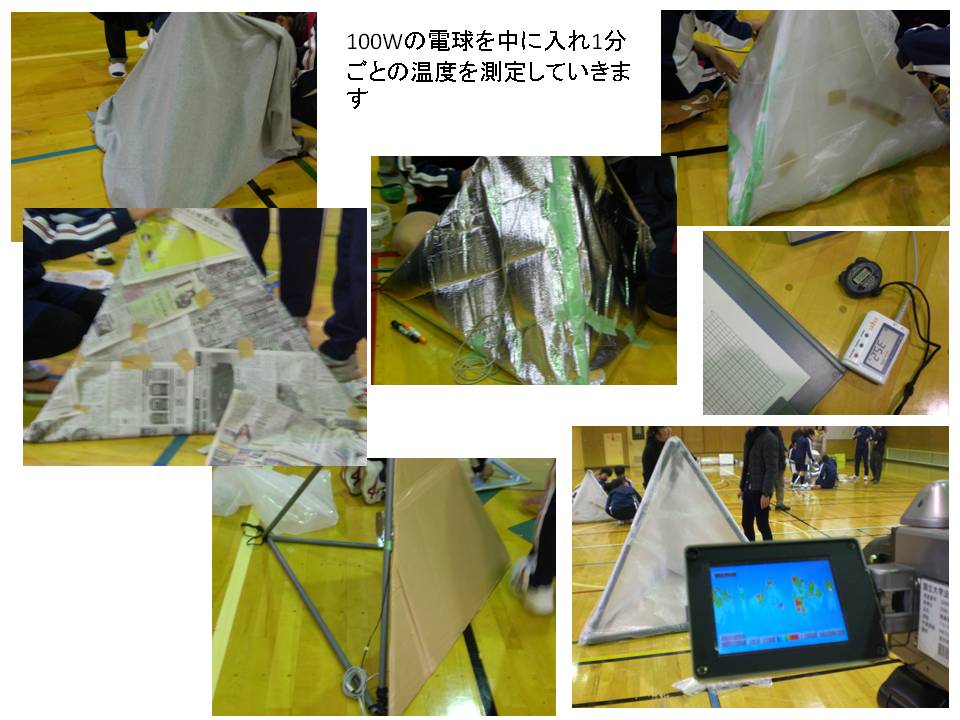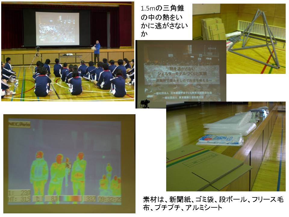 寒い体育館が避難所になった場合、小さな子やお年寄りが暖かく過ごすことができるためのシェルターを作りました。