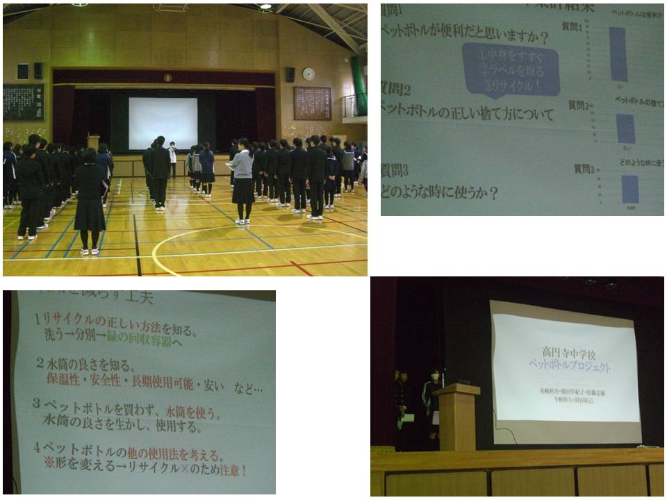 杉並区の環境サミットで発表した内容について全校生徒に報告しました