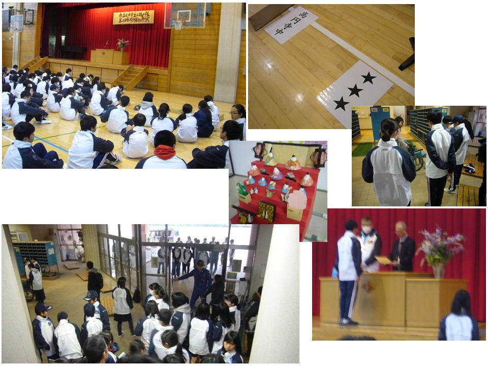 ・当日の午前6時の時点で判断し、状況により臨時休業や始業時の繰り下げ等の措置をとります。その場合、保護者の皆様には学校HPに掲出しお知らせします。また、学校より緊急メールで保護者の皆様に周知するとともに、未登録者には電話等で連絡します。