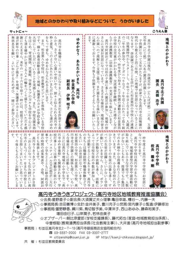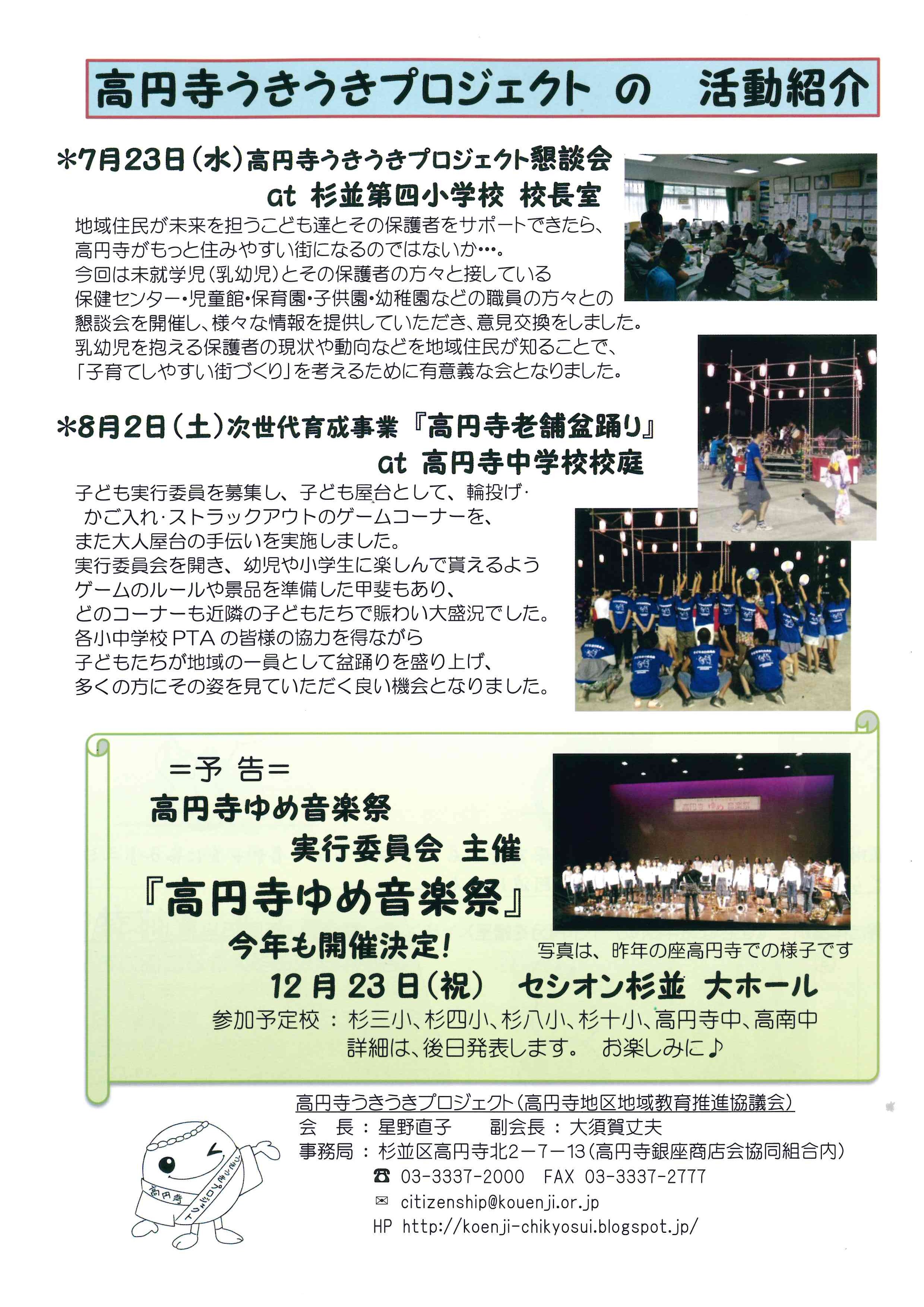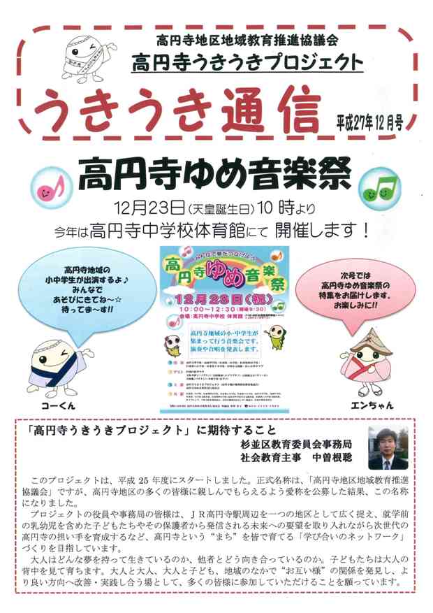 杉四小音楽教室/杉八小音楽教室/高円寺中吹奏楽部/高南中吹奏楽部/高円寺中高南中合同パンド/全体合唱