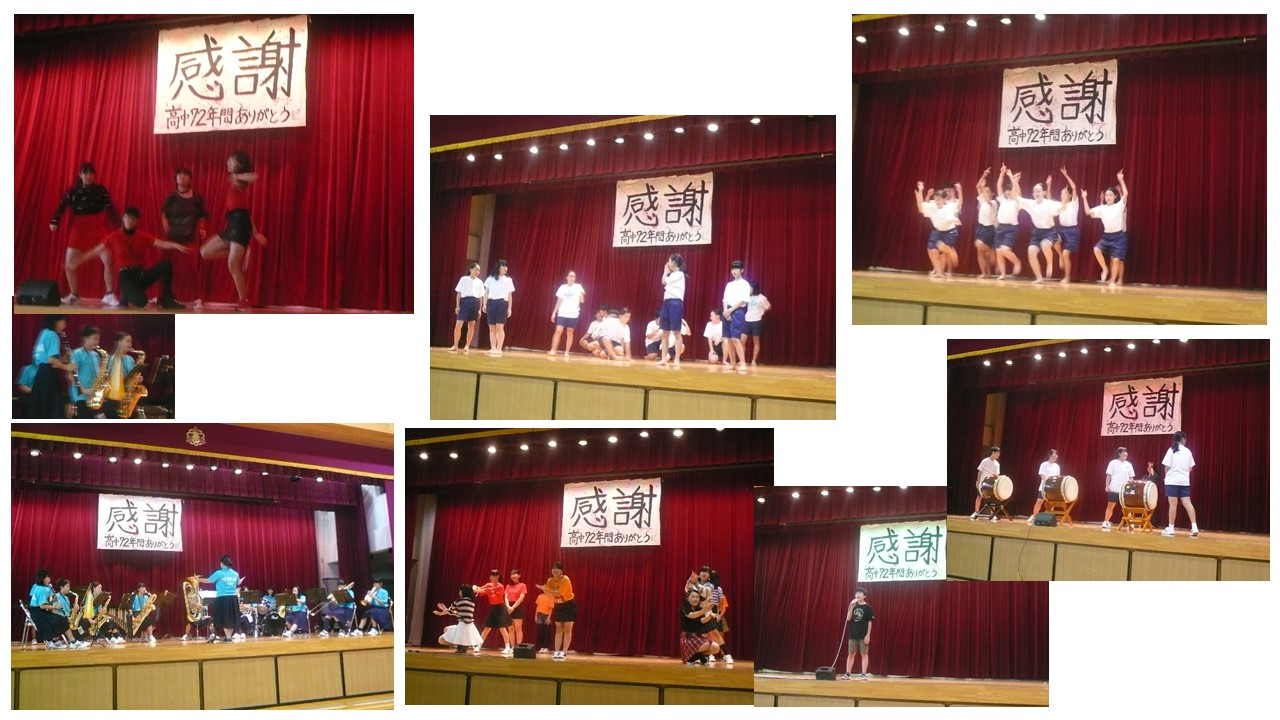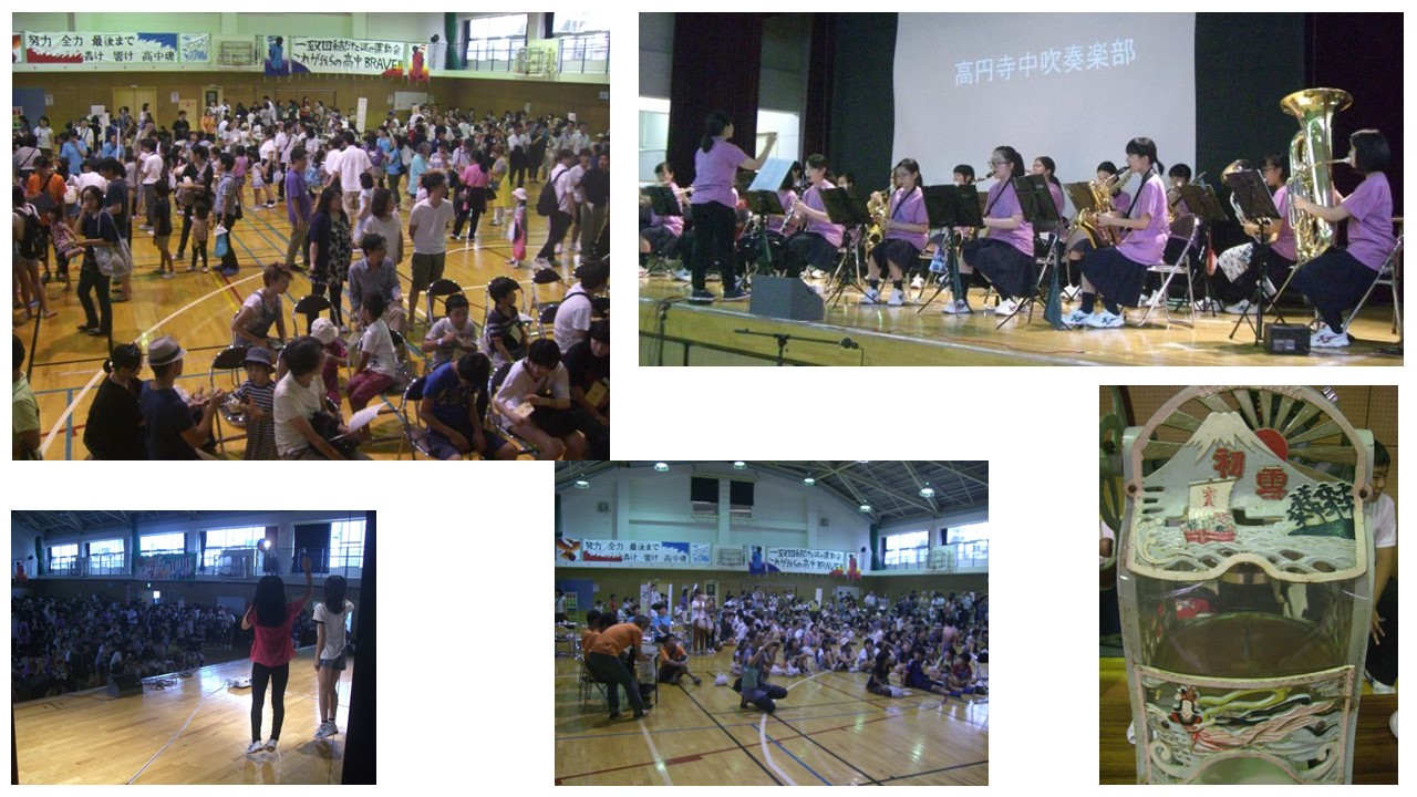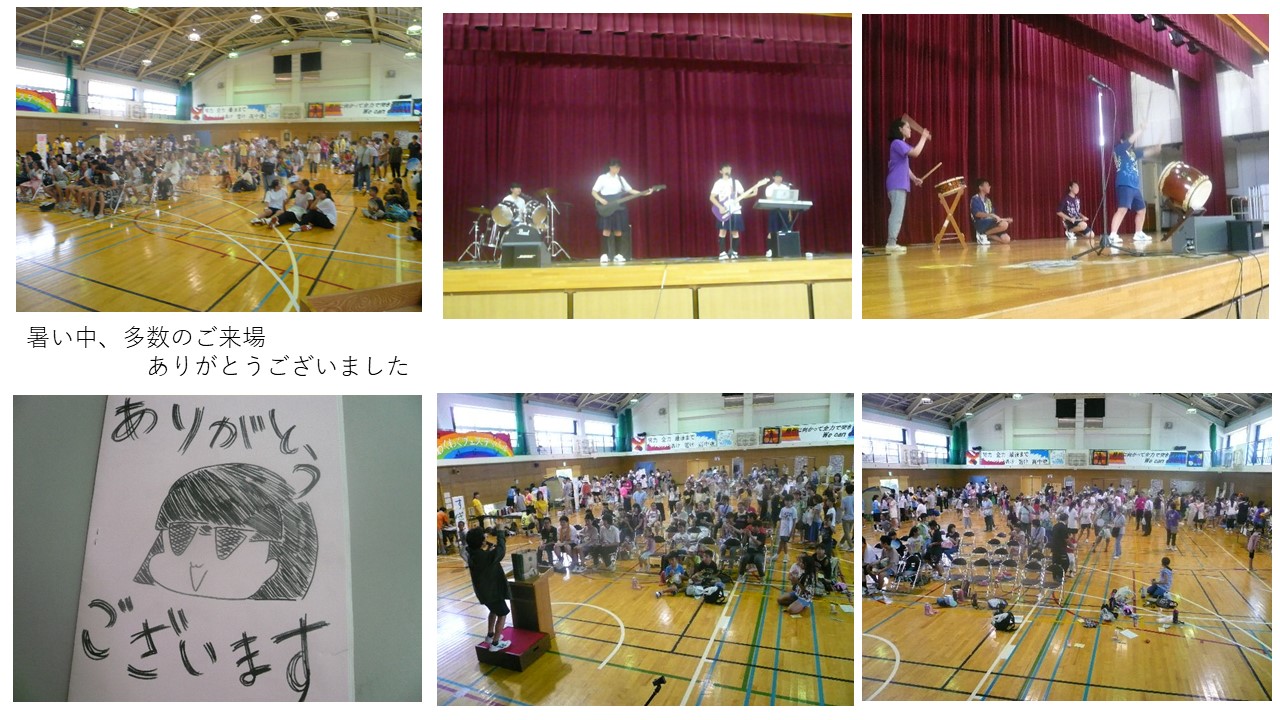 吹奏楽部演奏、バンド演奏、コーラスグルーブ、ベース演奏、和太鼓演奏、マジック