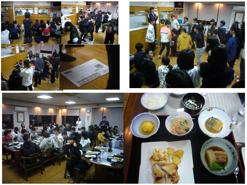 0700起床→0730朝食→0900講習→昼食・休憩→1330講習→入浴・夕食→2000レクタイム→2200消灯