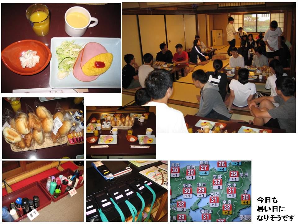 0745集合→0800出発→高坂SA→赤城高原SA→1130宿舎→昼食→1330開校式→講習→入浴・夕食→2000安全講習会→2200就寝