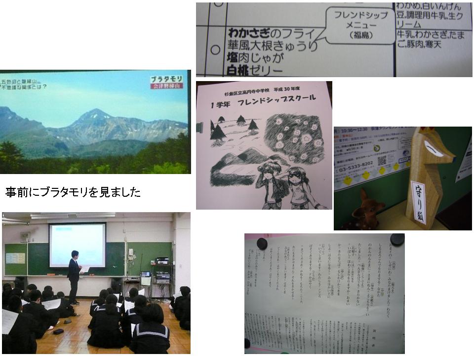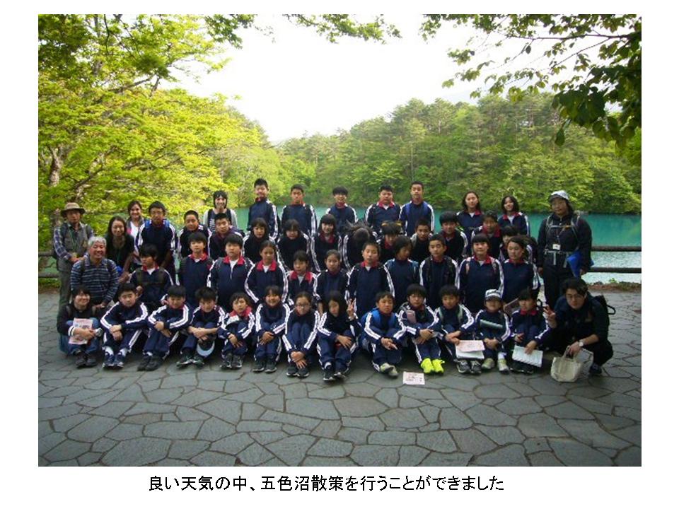 0730学校集合0750出発→羽生PA→那須塩原SA→1230第一コールドハウス目黒(昼食)→1330五色沼(散策)→1600大繩練習→宿舎・1800夕食・1930入浴・2030守り狐絵付け体験・消灯