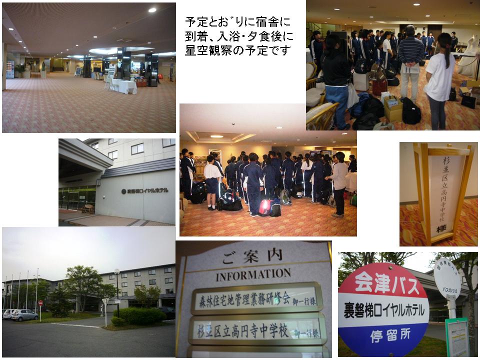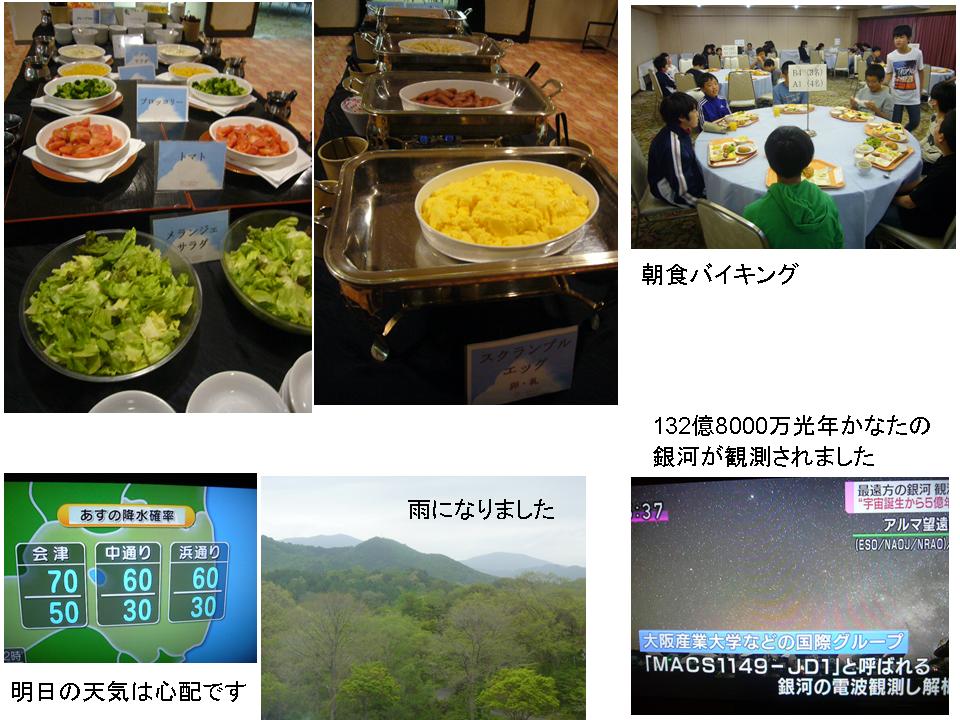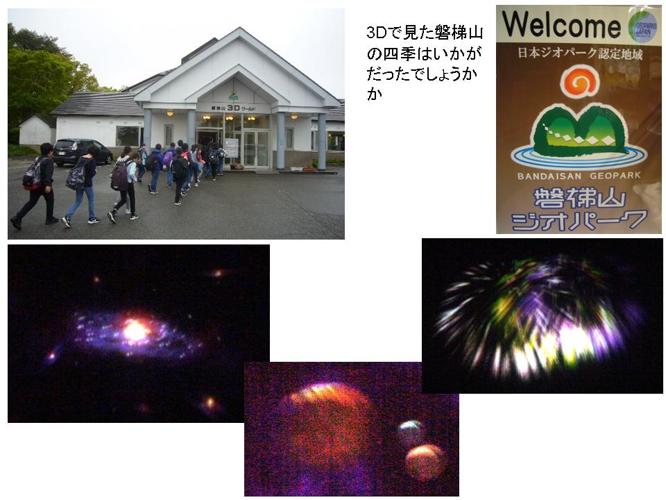 起床・朝食→0900休暇村(カレー作り)1330磐梯山噴火記念館・3Dワールド→1600宿舎・入浴・夕食→1930星空観察→2045宿舎・消灯