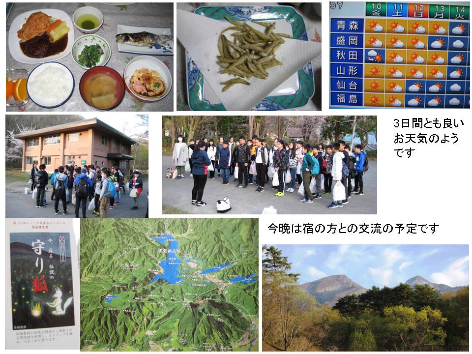 →1315磐梯山噴火記念館→1430五色沼散策→1600磐梯山噴火記念館→1720開校式→1815夕食→1910星空観察→2040入浴→2200就寝