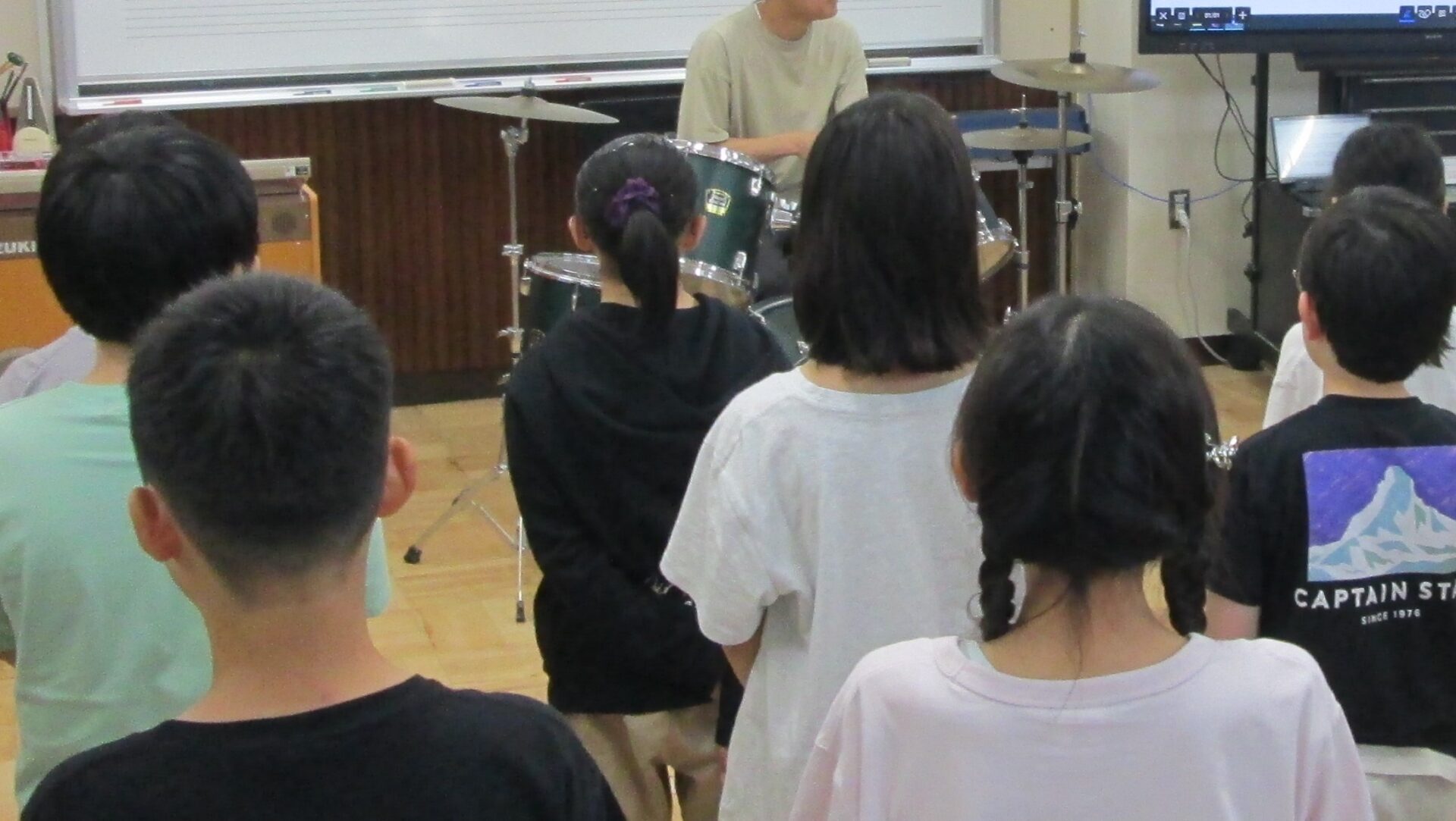 特別ゲストを迎え、「翼をください」をドラム&ピアノ演奏のもとで歌いました。いつものピアノとはまた違った雰囲気の伴奏で、子どもたちはいろいろなことを感じたようです。