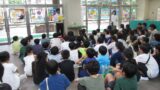 特別ゲストを迎え、「翼をください」をドラム&ピアノ演奏のもとで歌いました。いつものピアノとはまた違った雰囲気の伴奏で、子どもたちはいろいろなことを感じたようです。