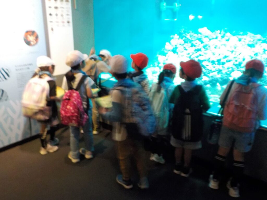 2年生5月15日(木)に、生活科見学で葛西臨海水族園に行きました。グループの中で、どこのブースに行くか話し合う姿や、魚を見て気付いたことを伝え合う姿がみられました。体験学習のコーナーでは、海の生き物の秘密について、身体を動かしながら学習することができました。