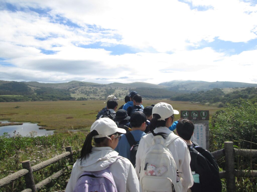 2日目は八島湿原のハイキング。杉並と湿原で、見られる植物の違いをガイドさんの話を聞きながら観察しました。また、黒曜石ミュージアムでは石を削ってキーホルダーを作りました。硬くてなかなか削れないところを、係員の方にコツを教えてもらうとパキパキと小刻み良く削ることができて満足げな子が多かったです。