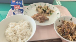 中華菜飯、中華スープ、しらたまフルーツポンチ、牛乳今日の給食は、中華風の味わいが楽しめる「中華菜飯」と、やさしい旨味が広がる「中華スープ」の組み合わせでした。お皿の上の混ぜご飯には、小松菜やにんじん、豚肉などの具材がたっぷり入り、どこを食べ...
