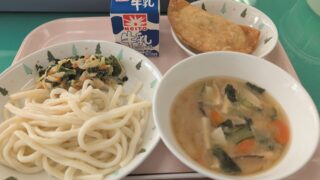 田舎うどん、野菜のごまだれあえ、さつまいもパイ、牛乳今日は、「田舎うどん」が登場しました。うどんは小麦粉に水や塩を加えて練り、細長く伸ばして作る日本の代表的な料理のひとつです。奈良時代に中国から伝わった「飩餤(どんたん)」という菓子が原型と...