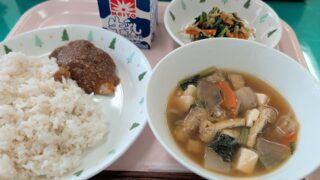 学校全体 のっぺい汁 今日の給食は、むぎごはん、さわらのごまみそがけ、さんしょくあえ、のっぺい汁、牛乳でした。のっぺい汁は、新潟県の郷土料理として知られています。里芋やごぼう、だいこん、にんじんなどの野菜をたっぷり使い、鶏肉や油あげなどを加えて煮込み、片栗粉でと... 2025.10.09 学校全体給食